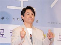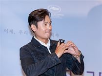 시사회장에 등장한 국민배우 이병헌. 다정한 손하트를 보내