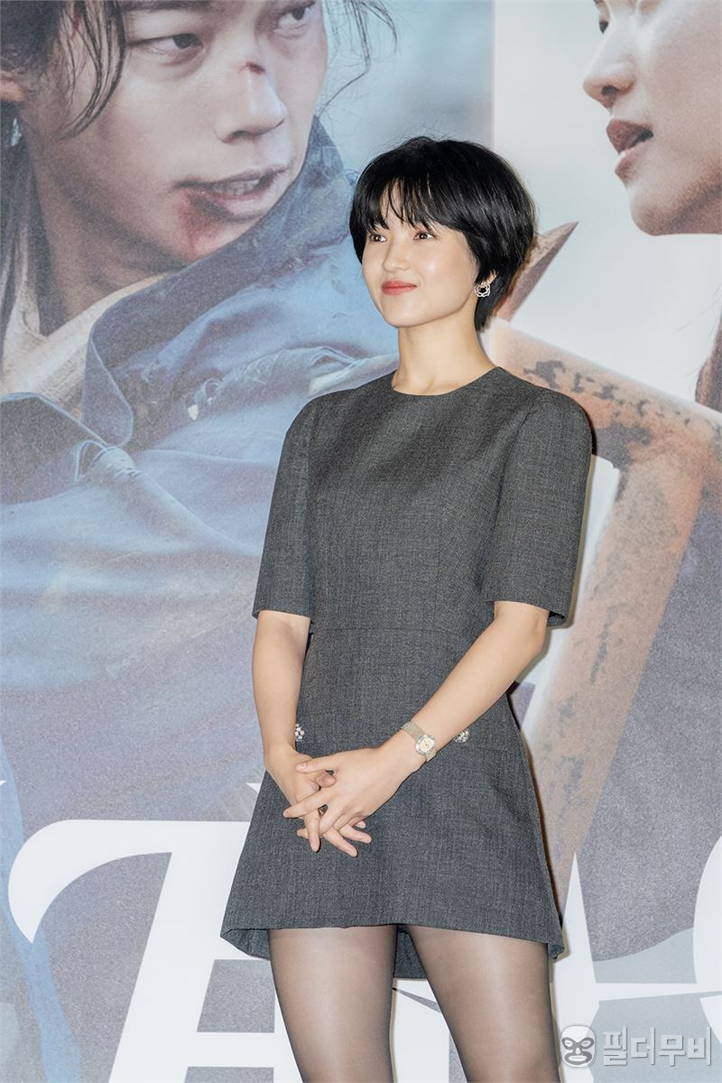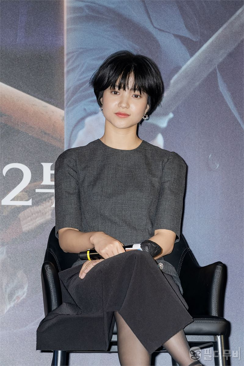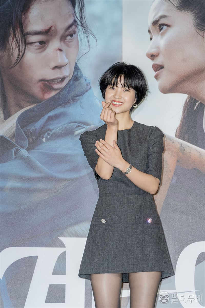 영화 <외계+인 2부> 제작보고회에서 무대인사를 하고 있는 배우 김태리