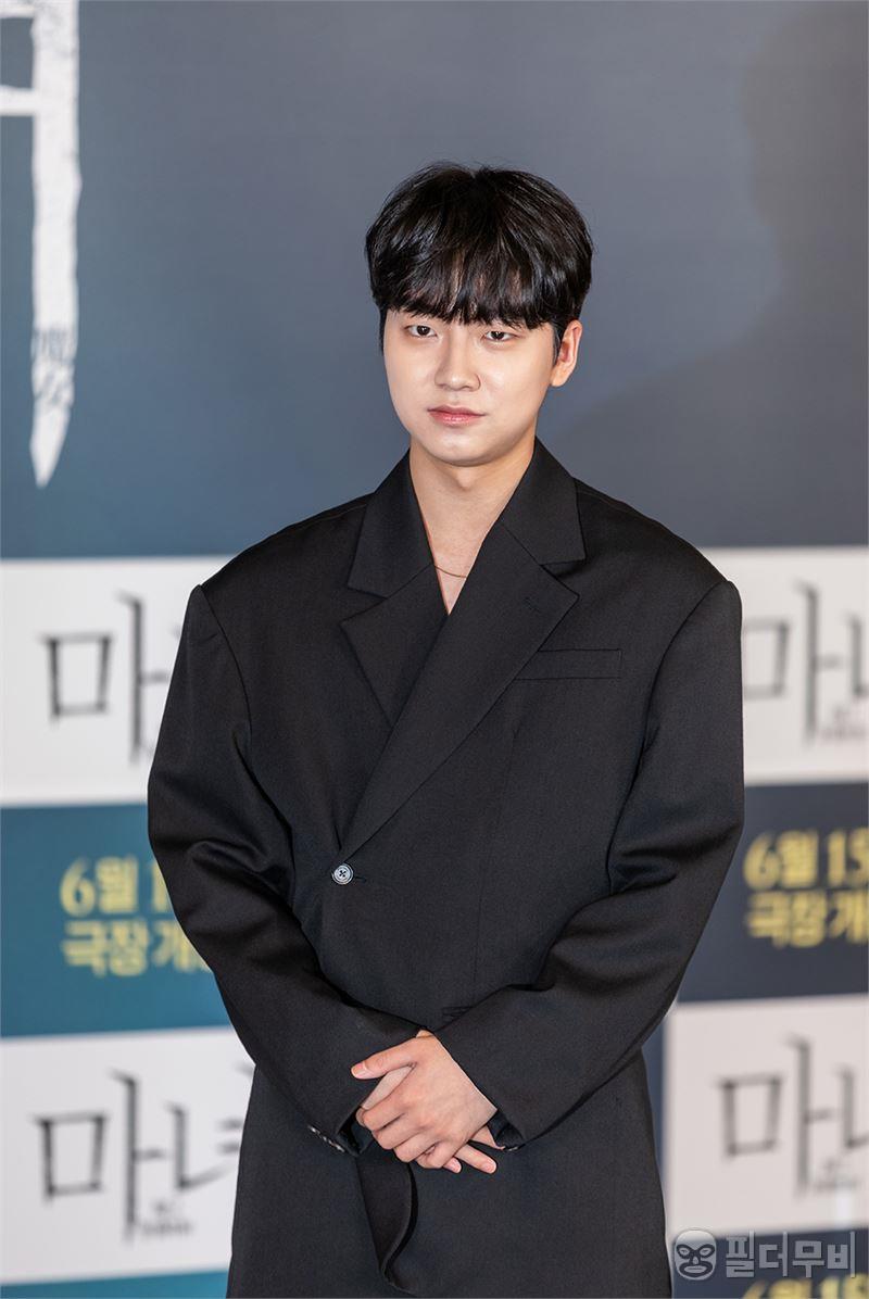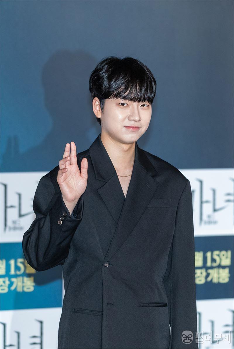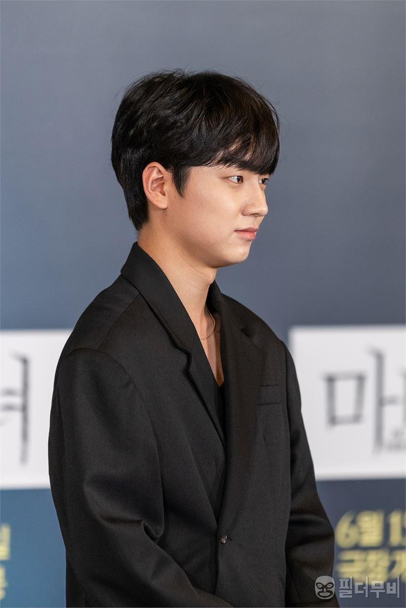 영화 <마녀2>의 뉴페이스 성유빈이 제작보고회에 참석해 무대인사를 하고 있다.