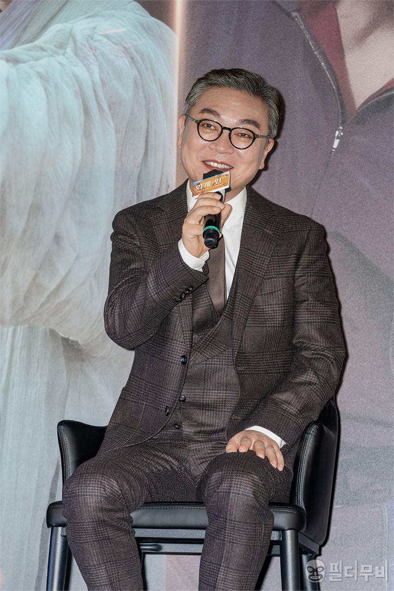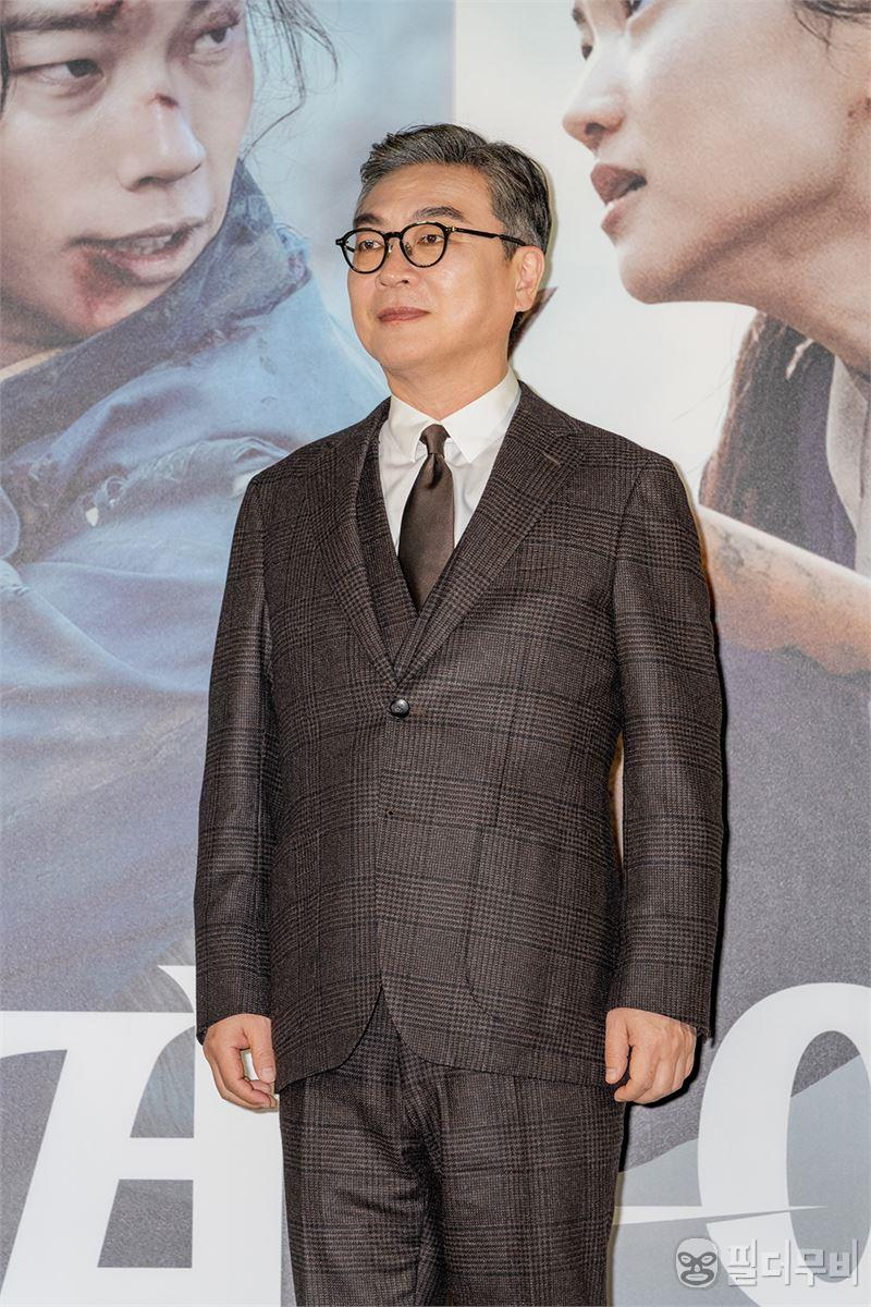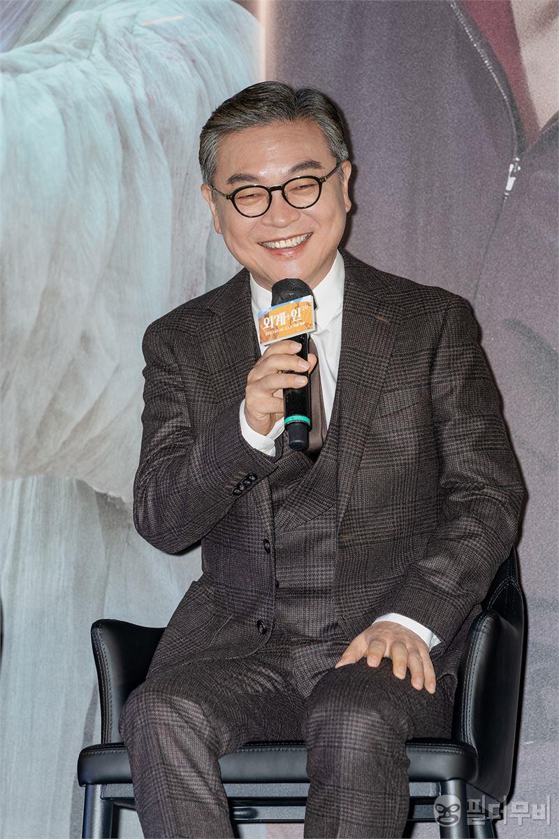 대한민국 최고 배우 중 하나. 김의성이 영화 <외계+인 2부> 제작보고회에서 무대인사를 하고 있다.