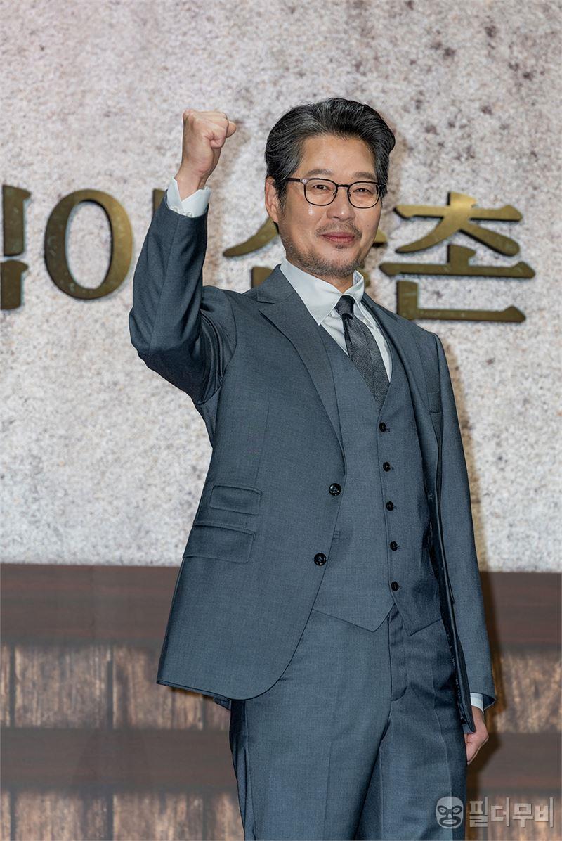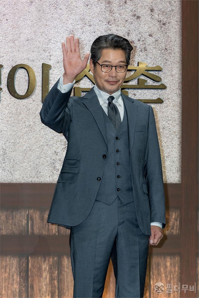 명품 배우의 무게감을 보이며 디즈니 + <삼식이 삼촌> 제작보고회 무대인사를 하는 배우 유재명