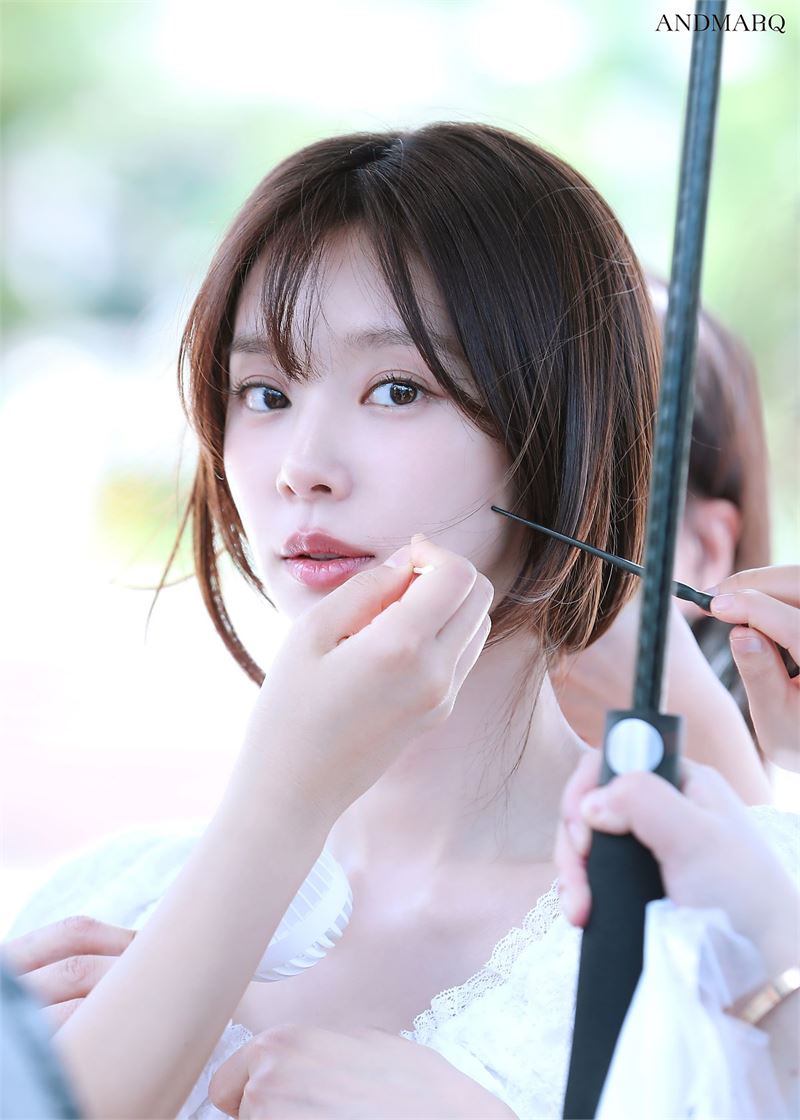 이주빈의 소속사 앤드마크는 21일 소속사의 네이버 포스트를 통해 이주빈의 광고 촬영 현장을 공개했다. 해당 CF에 대한 정보는 자세히 알려지지 않았지만, 이주빈은 특유의 청순한 의상과 분위기를 유지해 본인의 트레이드 마크인 '여신' 이미지를 강조했다.