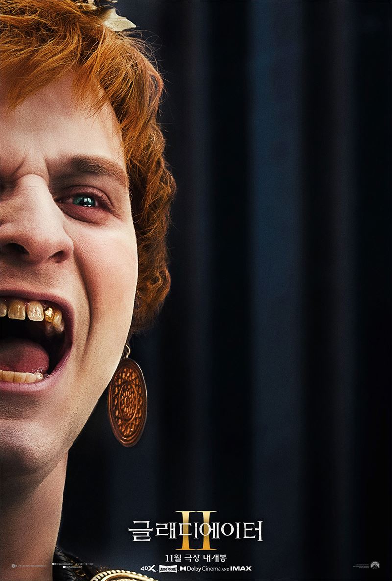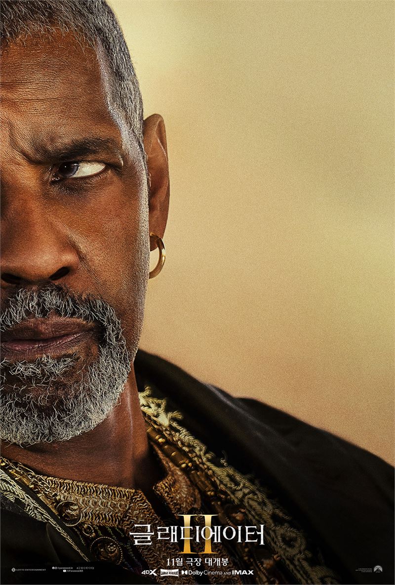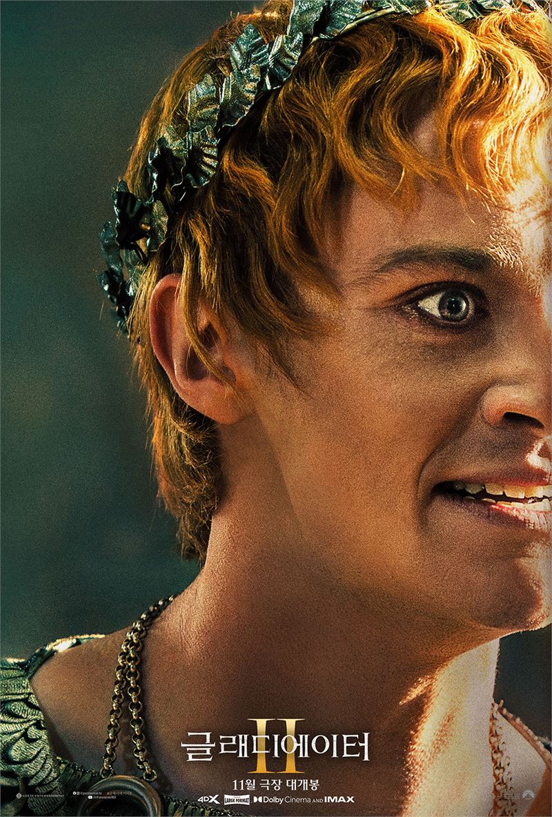 이번에 공개된 캐릭터 포스터는 로마 제국을 배경으로 한 캐릭터들의 압도적 비주얼로 역대급 스케일을 기대케 한다. 완벽한 검투사의 자태로 강렬한 아우라를 발산하는 ‘루시우스’(폴 메스칼)의 포스터를 비롯해