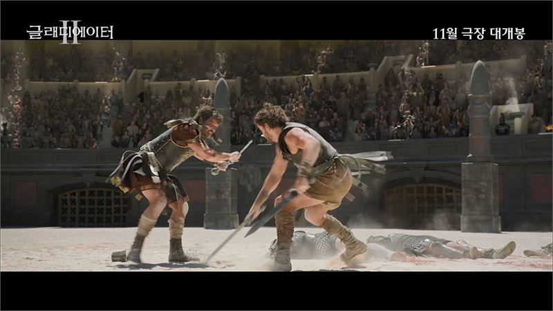 함께 공개된 1차 예고편은 로마 제국을 위해 맞서 싸우는 새로운 글래디에이터의 등장을 기대케 하는 한편, 압도적인 규모와 강렬한 액션으로 시선을 사로잡는다. 특히 로마의 상징, 콜로세움에서 펼쳐지는 전에 보지 못했던 거대한 해상 전투 장면을 비롯해 손에 땀을 쥐게 하는 치열한 검투사 액션은 스펙터클한 볼거리에 대한 기대감을 배가시킨다.