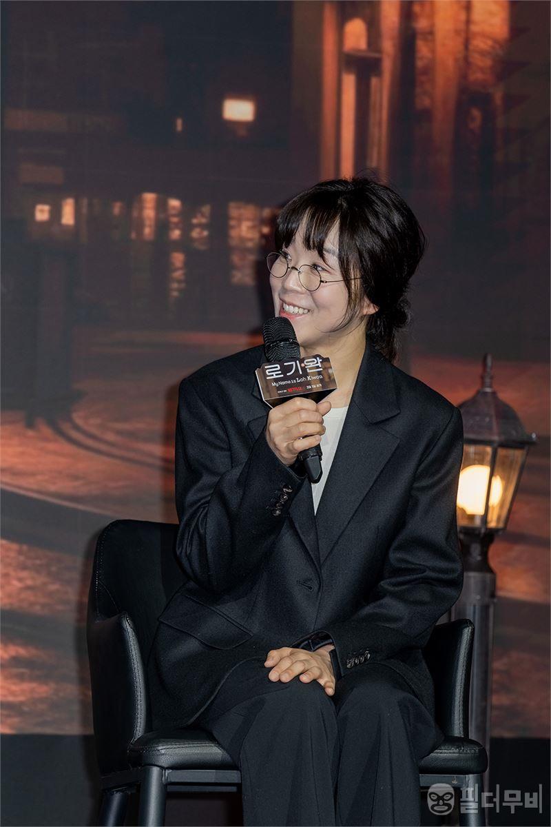 넷플릭스 오리지널 <로기완>으로 장편 데뷔를 한 최희진 감독의 제작보고회 인사.