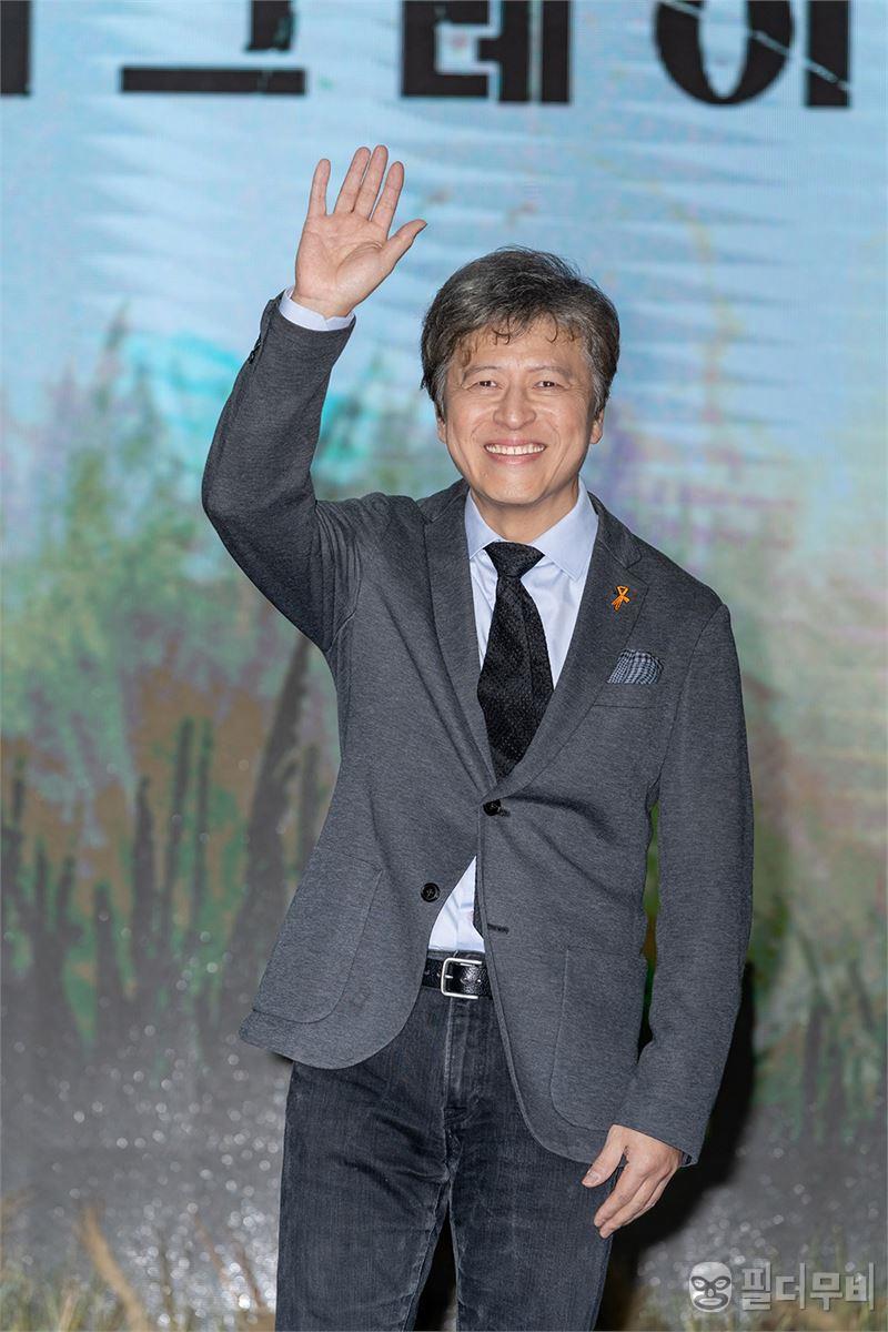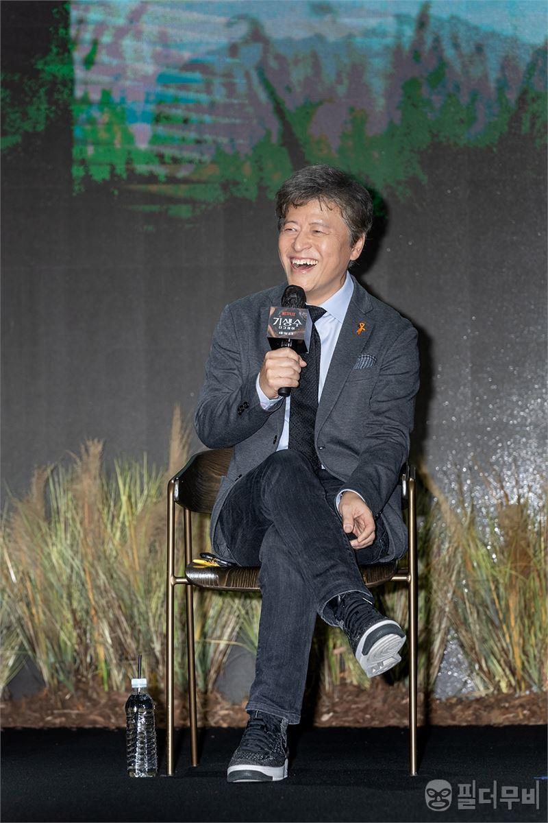 넷플릭스 오리지널 <기생수 : 더 그레이> 제작보고회에 참석한 배우 권해효의 중후한 무대 인사.