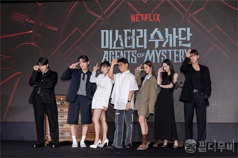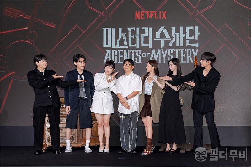 넷플릭스(Netflix) 예능 이 제작발표회를 성황리에 개최했다.이용진, 존박, 이은지, 혜리, 김도훈, 카리나가 과학적으로 설명할 수 없는 기묘한 사건들을 추적하고 해결하는 어드벤처 추리 예능 이 6월 18일 제작발표회를 개최하며 뜨거운 반응이 쏟아지고 있다. 은 넷플릭스 두뇌 서바이벌 게임 과 [대탈출], [여고추리반] 등 특유의 탄탄한 세계관과 촘촘하게 설계된 미션 등으로 두터운 팬덤을 구축한 정종연 PD의 신작이다. 정종연 PD는 “어드벤처가 중심이고 추리는 곁들어진 작품”이라면서 “여섯 명의 미스터리 수사단이 좌충우돌
