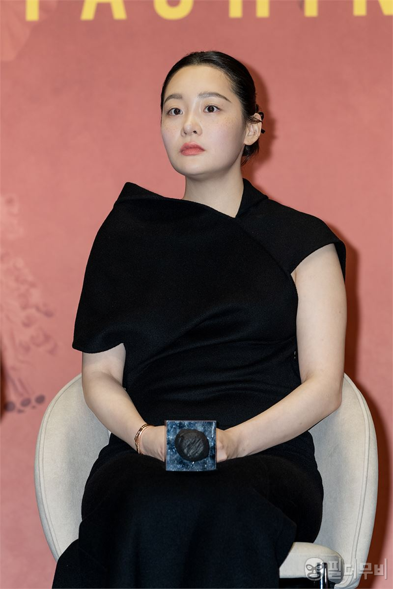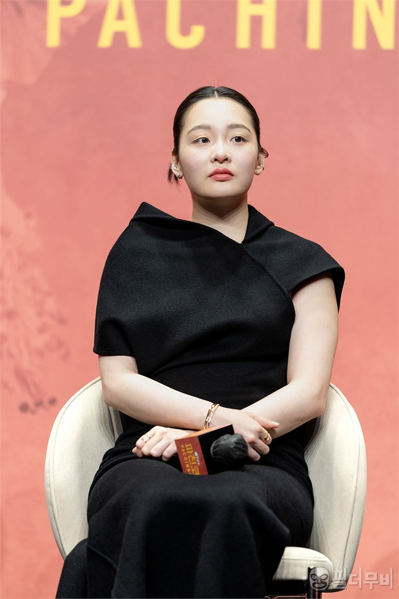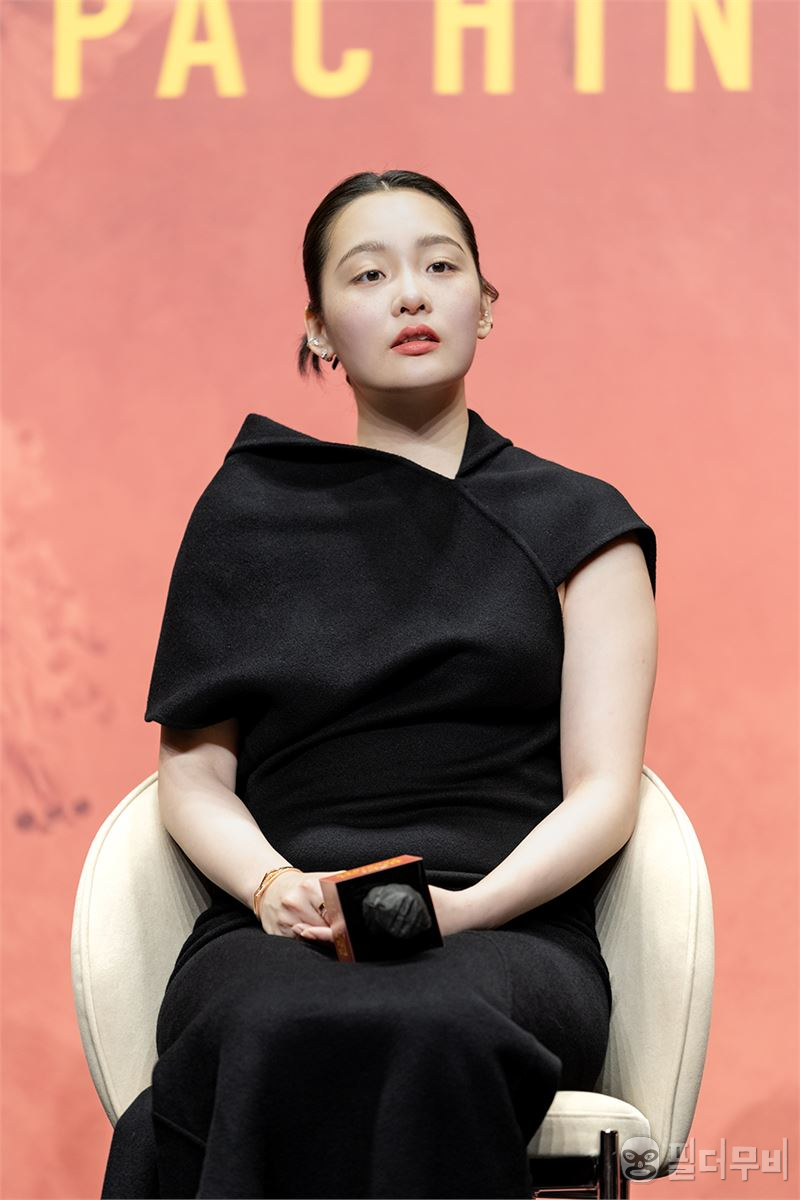 애플TV+의 역대급 흥행작 '파친코'가 시즌2로 돌아왔다. 제작보고회에 참석해 무대인사를 하고 있는 배우 김민하.