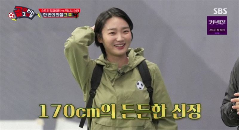 또한 SBS '골 때리는 그녀들'('골때녀')에서 'FC 액셔니스타'의 새로운 수문장을 맡아 우월한 기럭지와 배구 선출 시절의 경험을 살려 매회 방송에서 맹활약을 펼치며 눈길을 끌고 있다.
